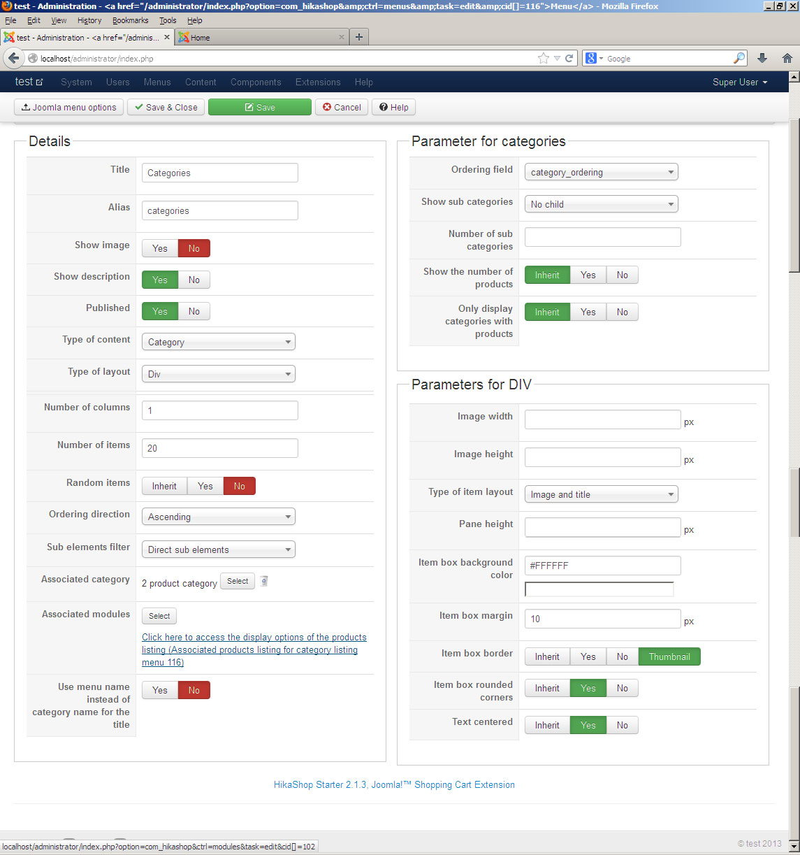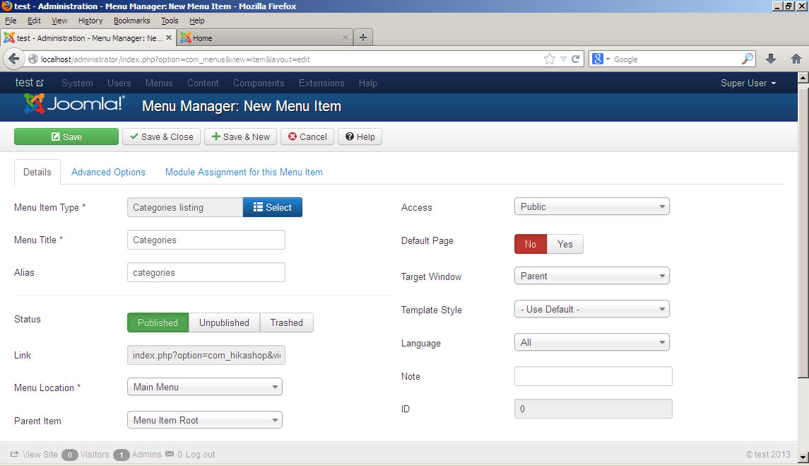 В третьих привязал модуль вывода списка категорий к меню.