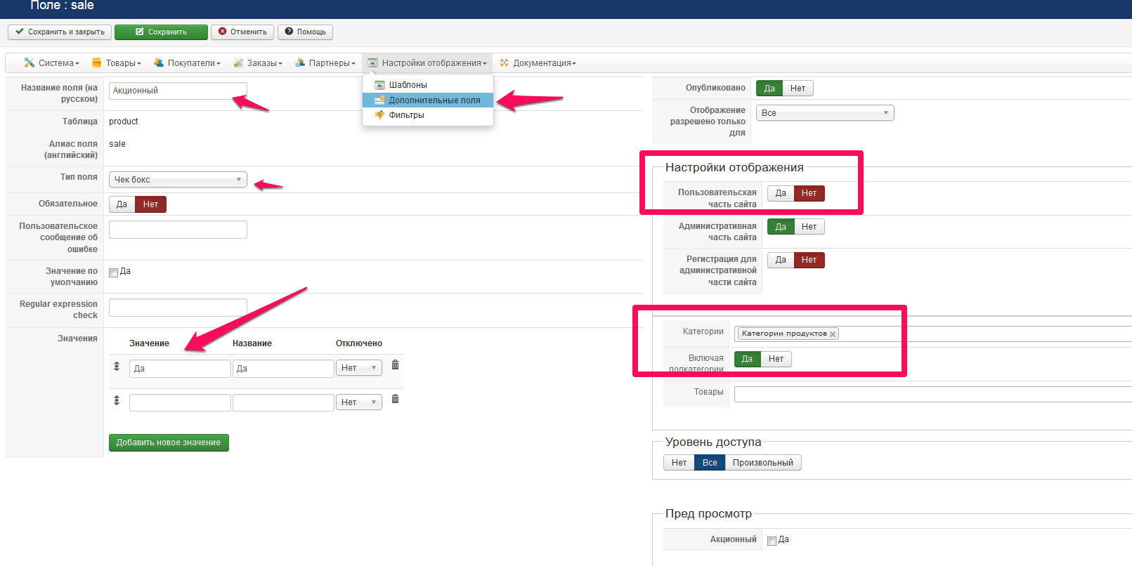 А отображение я так понимаю надо пилить шаблон. Да и имя в кнопочках надо заменить а тоне понятно пользователю что это за "PRODUCT_sale нисходяще "