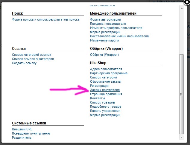 внимательно прочитайте все пункты меню которые можно выбрать при создании нового пункта меню