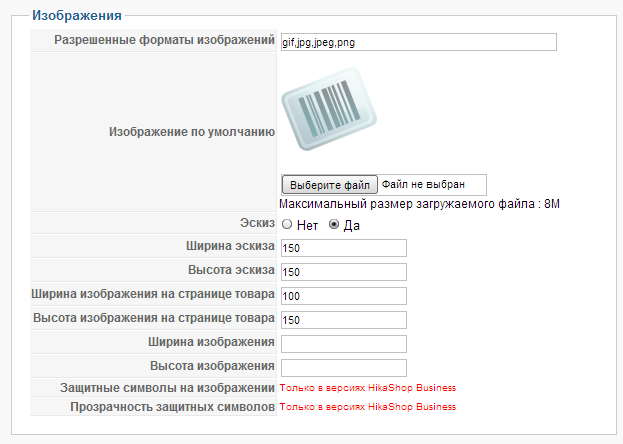 изобажение товара, как настроить