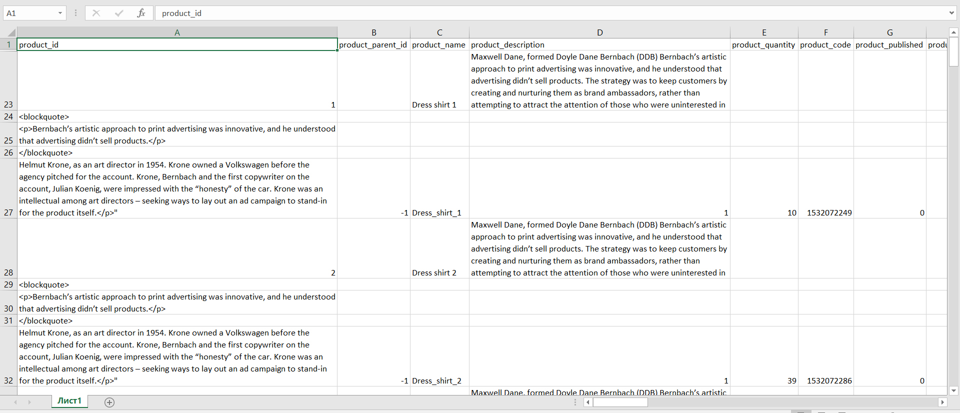 Если вы добавляете новые товары, то идентификаторы не надо указывать вообще. Иначе будут конфликты.