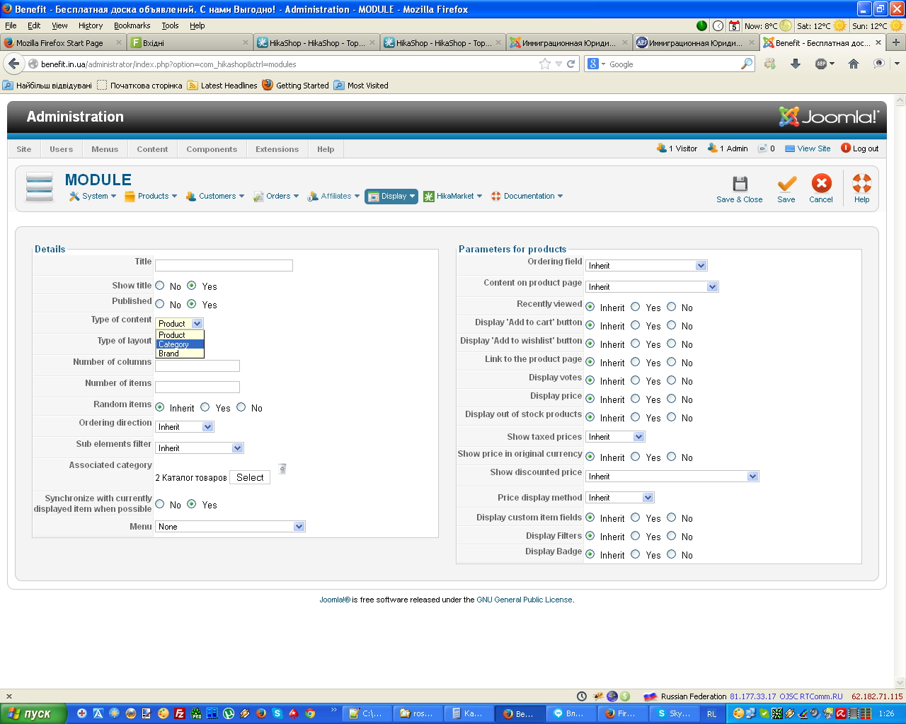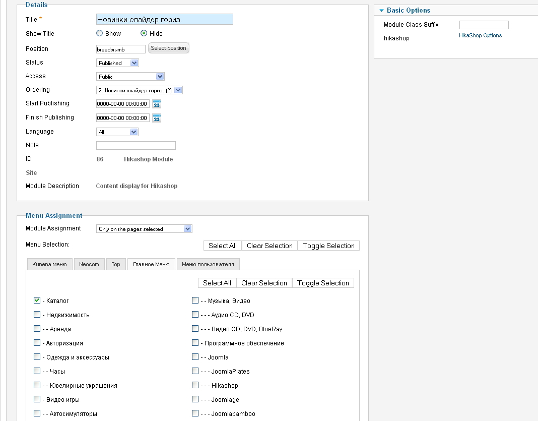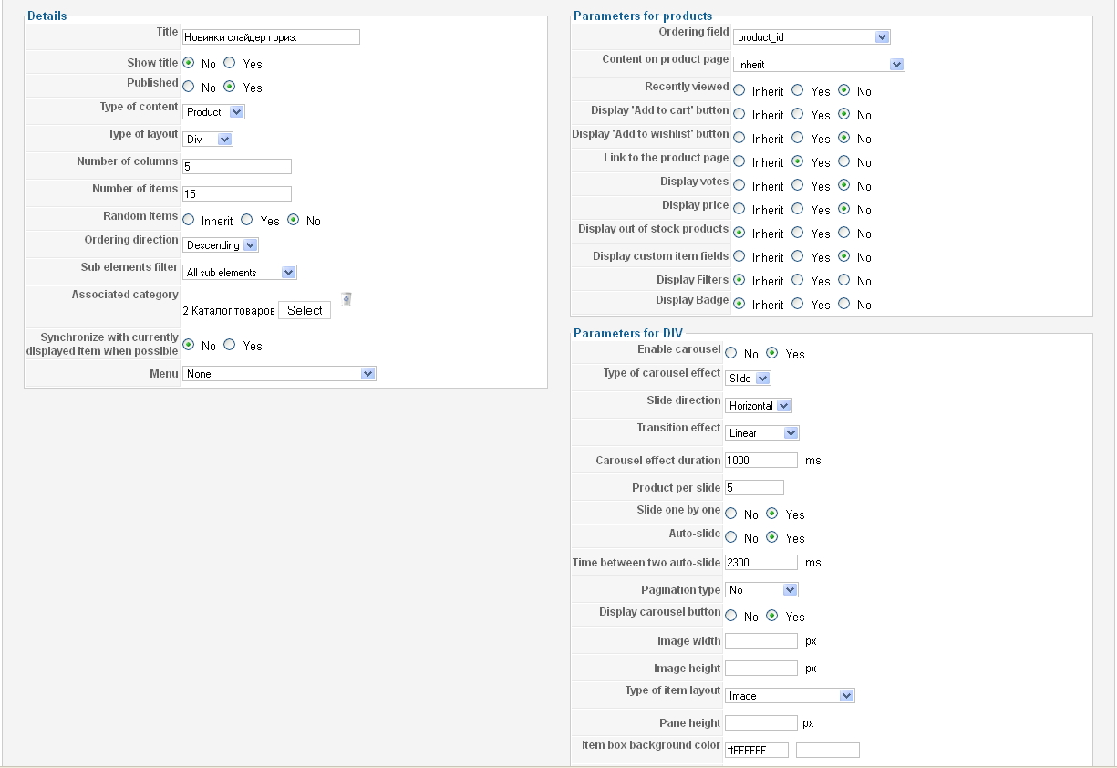 Это вообще все не то, это настройки HikaShop модуля, а под "Тип контента" имеется в виду что выводить на странице