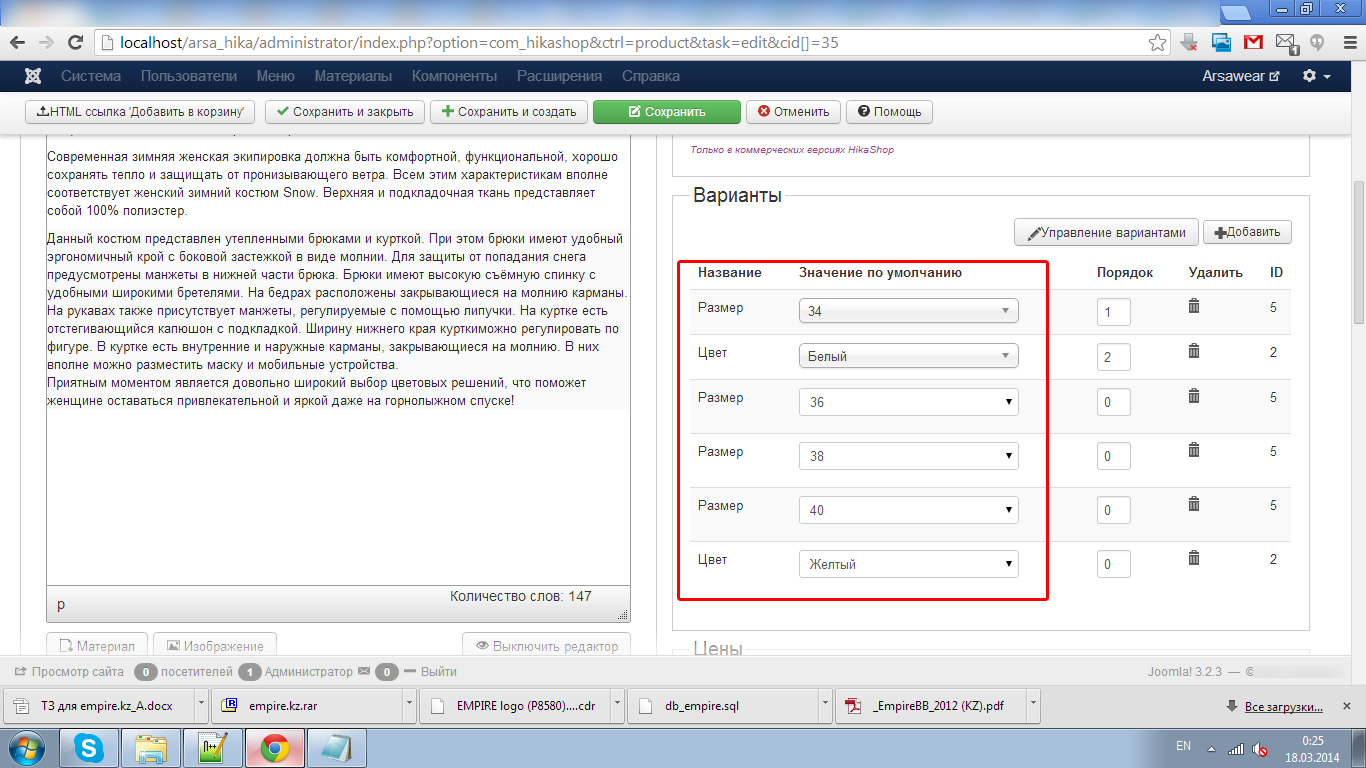 К примеру, Есть товар - спортивный костюм - я хочу добавить цвет: белый и оранжевый, и размеры 34 / 36 / 38 / 40. При этом в базе (списке variants) есть 5 цветов и 10 размеров. Я хотел бы применить к товару именно указанные мной цвета, а не тратить время на удаление не нужных variants, которые создает сам магазин.