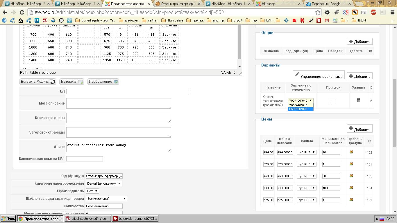 Привязка вариантов к определенной цене
