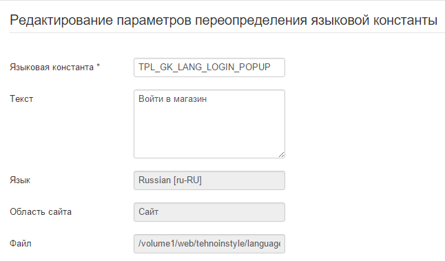 Переопределение констант интересная штука. Думал переводить яз. файл шаблона (из-за Входа/Регистрации на сайт и ещё нескольких мелочей, не всё перевелось само), но попробовал сделать так: