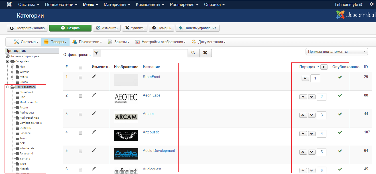 Производителей я добавил. Например Monitor Audio. Если на странице товара (сайт) в спецификациях выбрать Производителя, открывается страница Monitor Audio и ниже вперемешку добавленные товары.