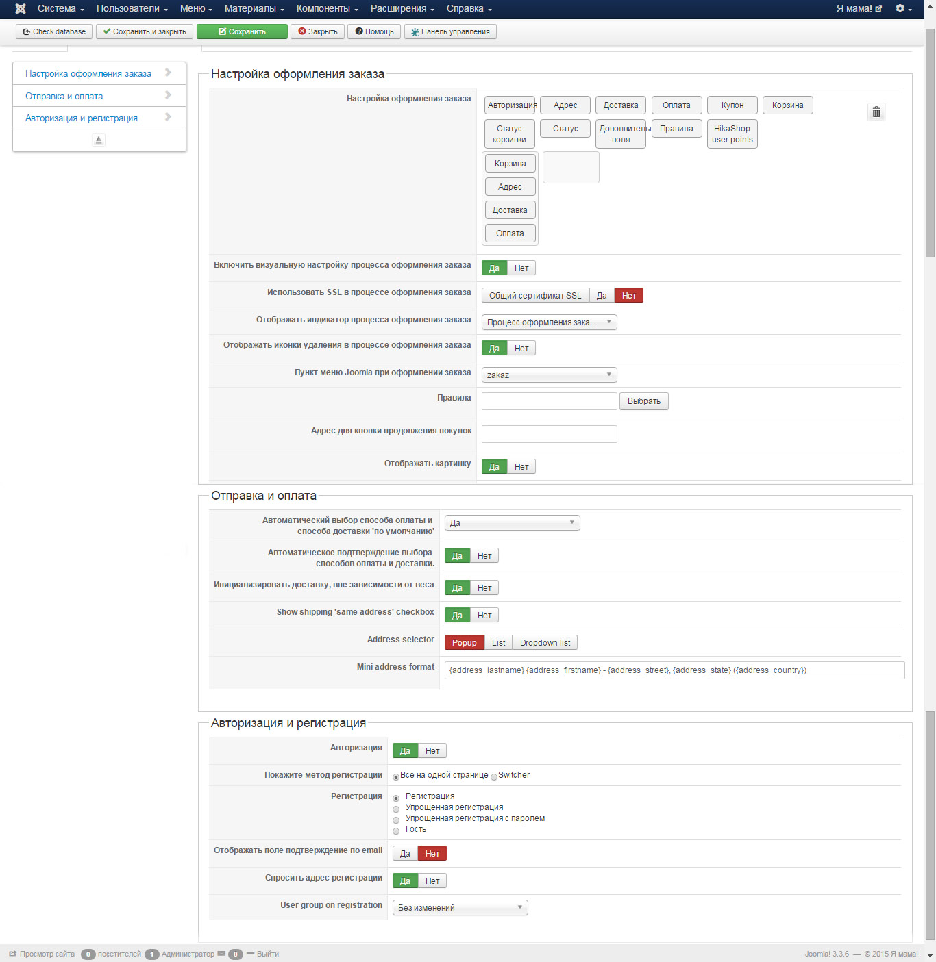 "Включить визуальную настройку процесса оформления заказа" поставил "НЕТ" чтоб было понятней что там всего 3 этапа оформления