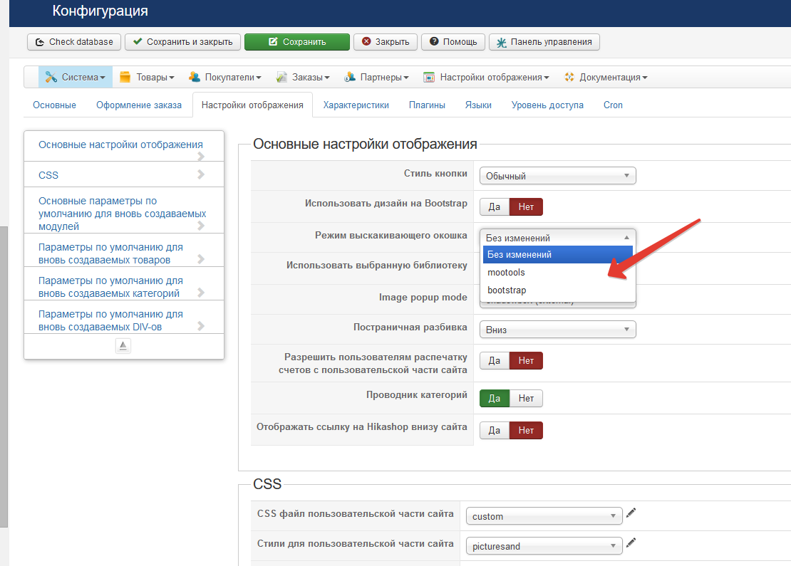 Вот нашла тему с ответом на мой вопрос,но по английски) Подскажите, пожалуйста,где в настройках выставить bootstrap/mootools?