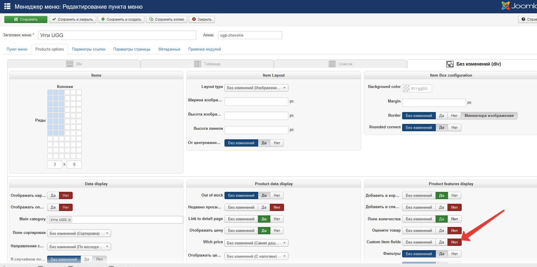 Создала там item поле Webcam color типа singledropdown для продукта Webcam, и посмотрела как оно на сайте выводится.