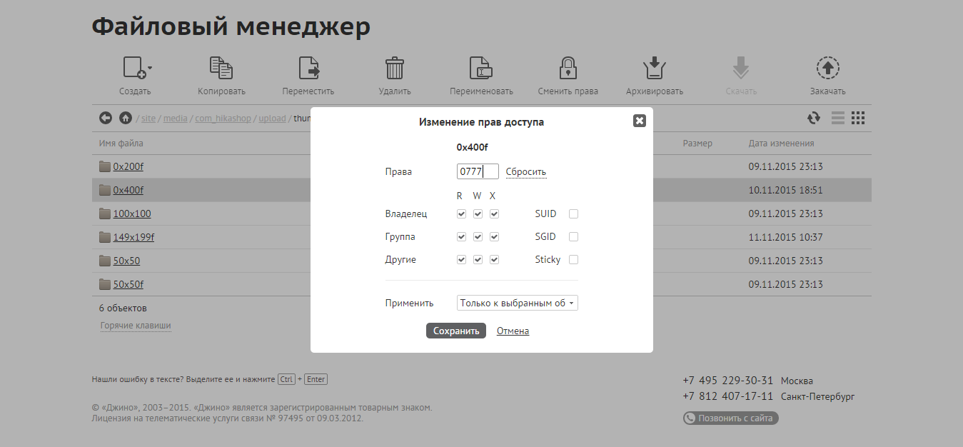 Права 777 на все каталоги в папке media