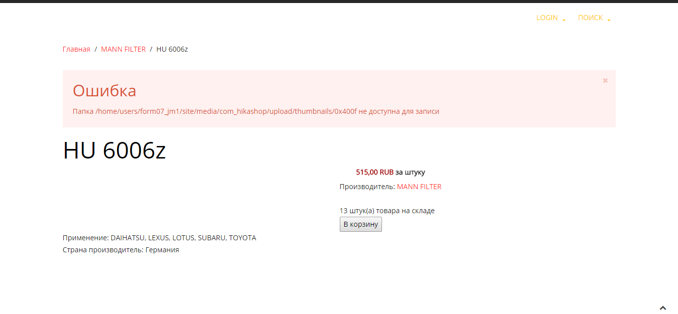 JFolder::create: Не удалось создать каталогPath: /media/com_hikashop