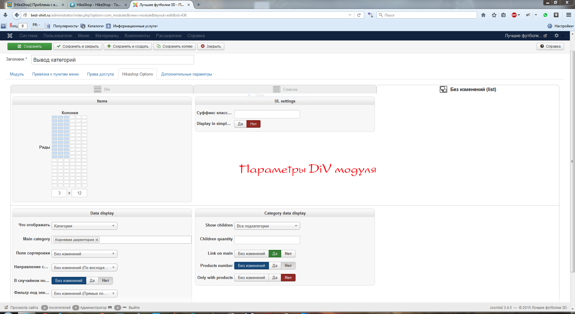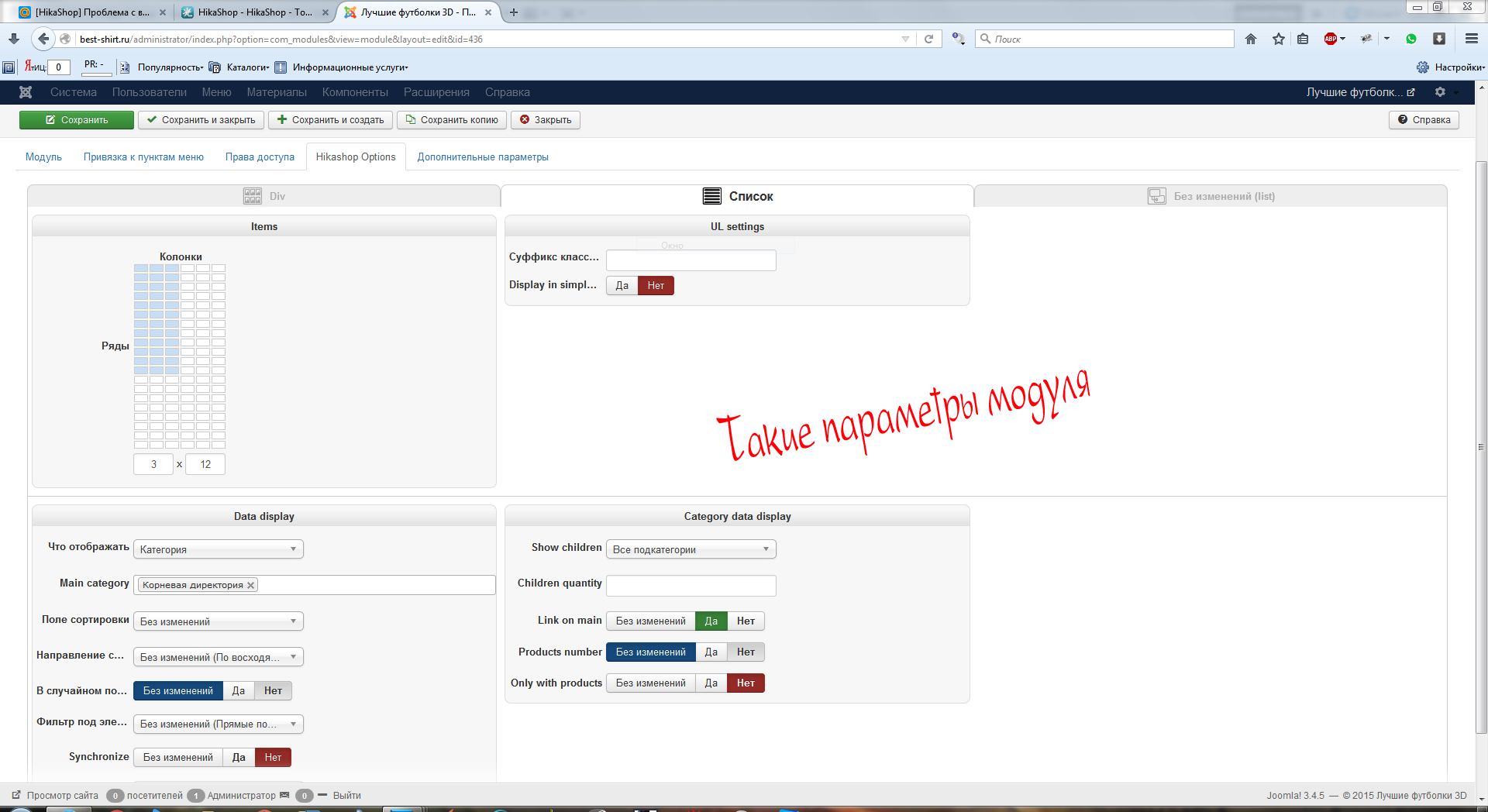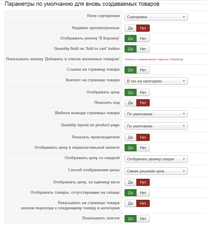 Также, покопавшись на форуме, выставил настройки отображения в настройках самого компонента Hikashop (crhbyijns #4, # 5, #6)