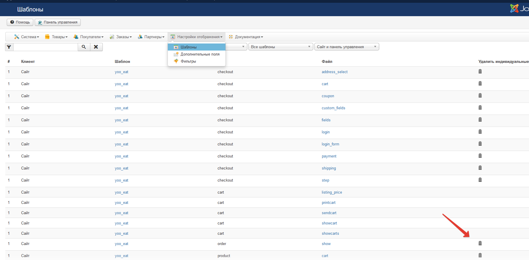 по наличию этой корзинки вы можете определить что какой-то шаблон у вас переопределен.