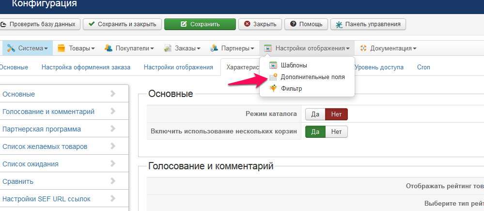 Кроме разделов аксессуары и контрольные метки, их я выведу через сопутствующие товары