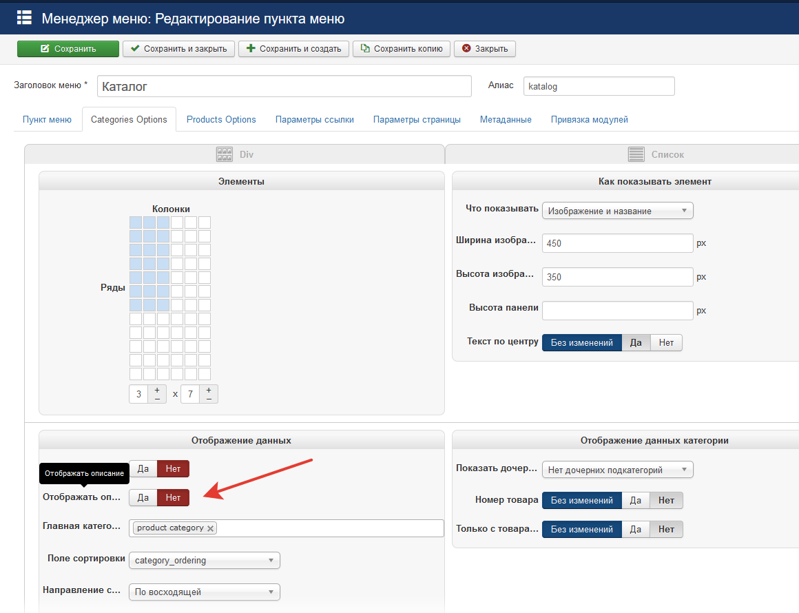 Не выводятся описания категорий