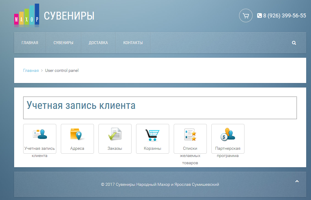 Вот сейчас дошел до очередного бага. Страница учетной записи клиента выглядит так: