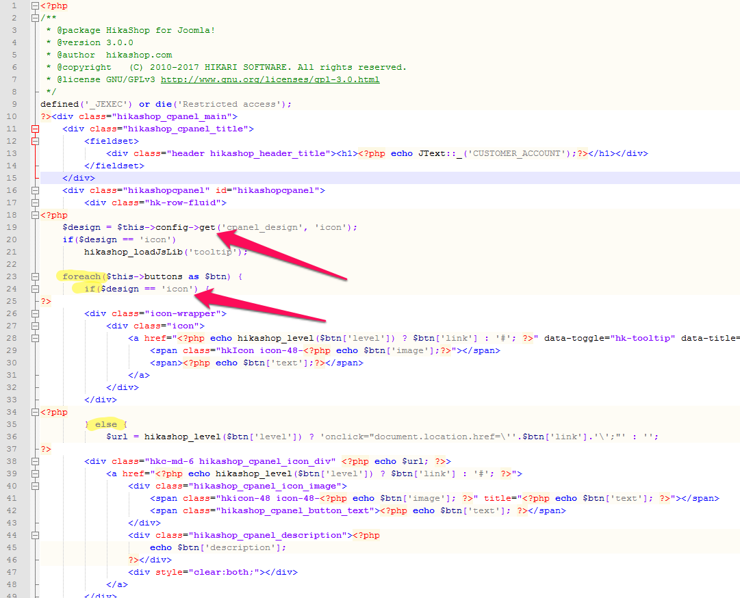 В новом файле есть выбор cpanel.php конфигурации дизайна С-панели, причем я перерыл все настройки хики, но так и не нашел где это включается/переключается.