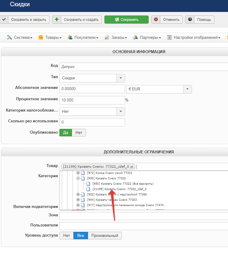 Выбор товаров для скидки