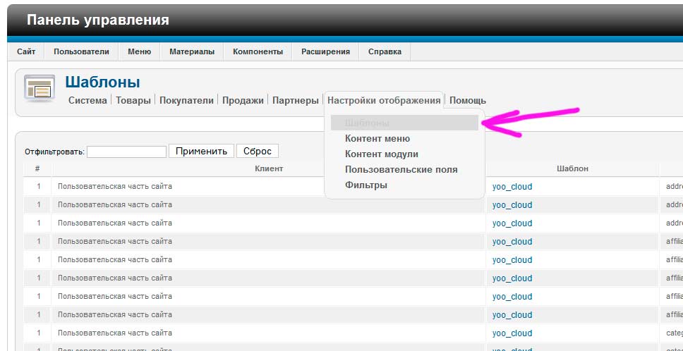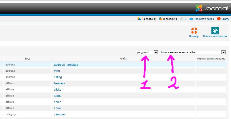 Не забываем выбрать именно тот шаблон, который вы используете в Joomla