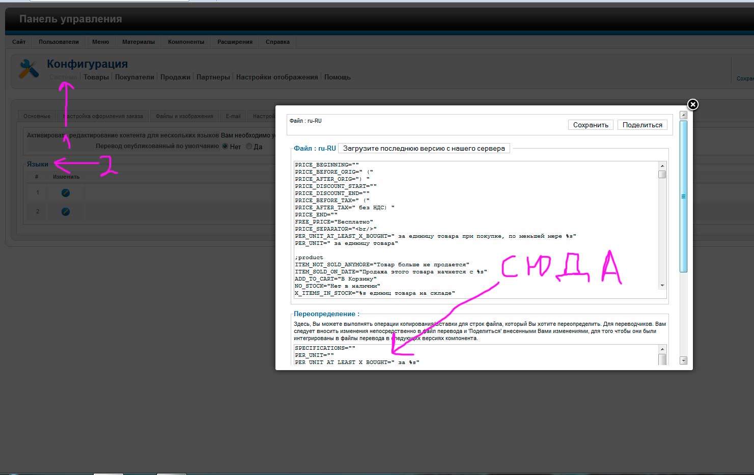 В редакторе добавляем вот эту строчку в то место, которое вам необходимо (ориентируйтесь по скриншщоту)