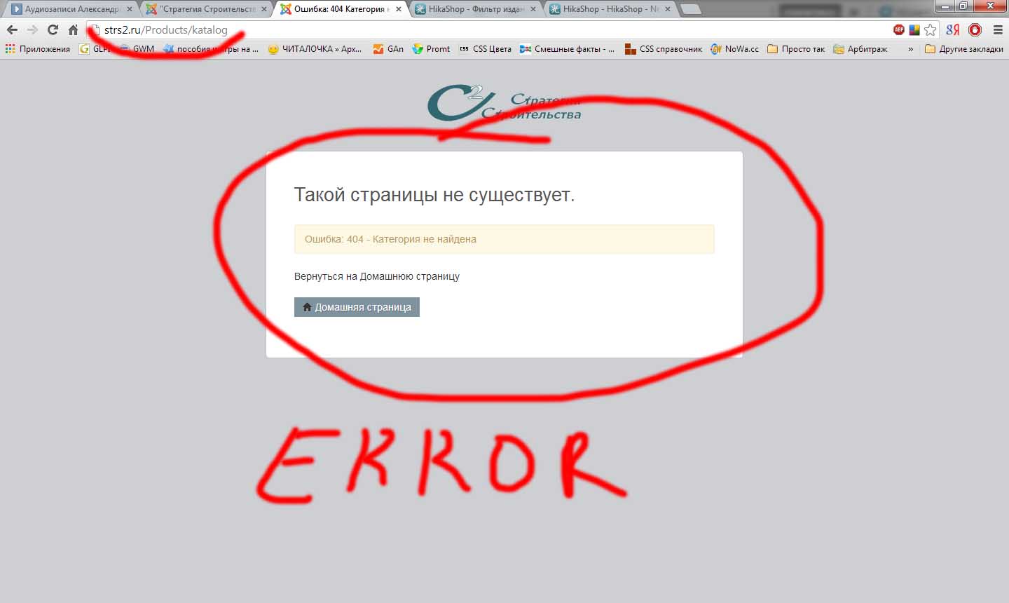 Не беда, идем на форум, находим описание похожей ошибки, делаем все по инструкции (не смотря на разницу в версиях). ииииииии.... получаем 404 ошибку.