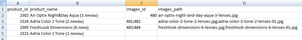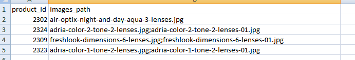Названия ваших картинок, нужно прописать в колонку images_path, обязательно разделяя точкой с запятой, если их две или больше.