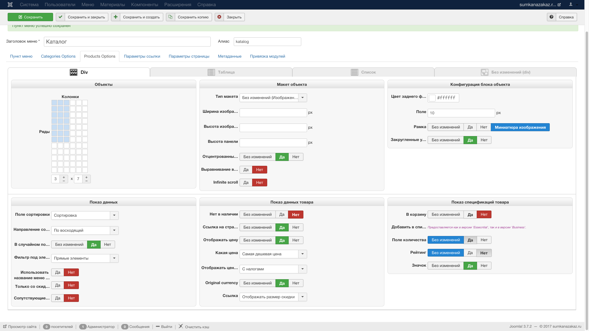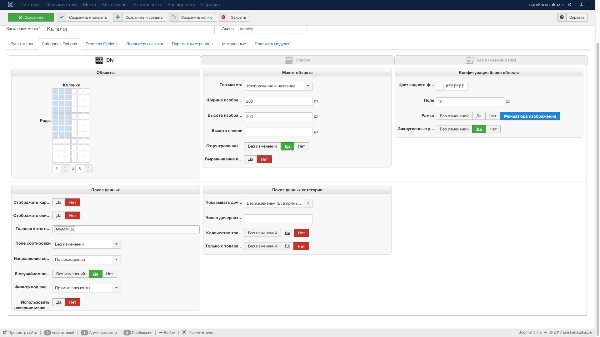 Первично настроил HikaShop, вывел через пункт меню Список категорий. Есть 3 категории и 3 товара, по одному товару в каждой категории. Сейчас выводится на странице 3 категории в ряд, а под ними 3 товара, тоже в ряд. Но нужно скрыть отображение товаров на этой странице совсем, а отображать только категории. Товары должны отображаться только когда выбрана какая-то конкретная категория. Уже пробовал скрывать и через Product Options и через Настройки отображения в Конфигурациях. Никаких результатов. Может как-то еще можно скрыть товары, или только с помощью модуля попробовать выводить?