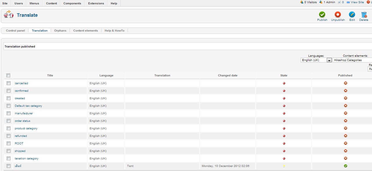 ถ้าเราต้องการ Published อันไหนเรากะกดได้เลยครับ มันจะแปล ส่วนที่มีข้อมูลภาษาไทยที่มีอยู่ในเว็บให้ครับ ส่วนไหนที่ยังไม่มีข้อมูล มันจะยังไม่ Published ครับ