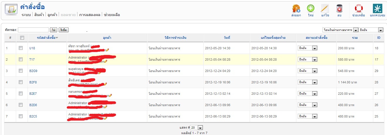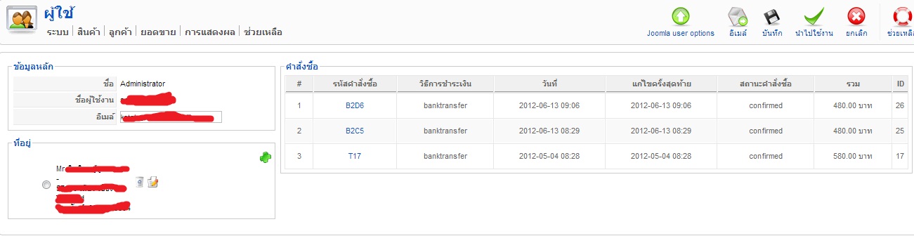ตอนนี้ทางเว็บที่ดิฉันได้ทำโดย hikashop มีลูกค้าสั่งซื้อสินค้าแล้ว โอนตังให้แล้ว แต่เราจะเข้าไปดูข้อมูล ที่อยู่ของลุกค้า รวมทั้งชื่อสินค้าที่ลูกค้าสั่งได้อย่างไรค่ะ