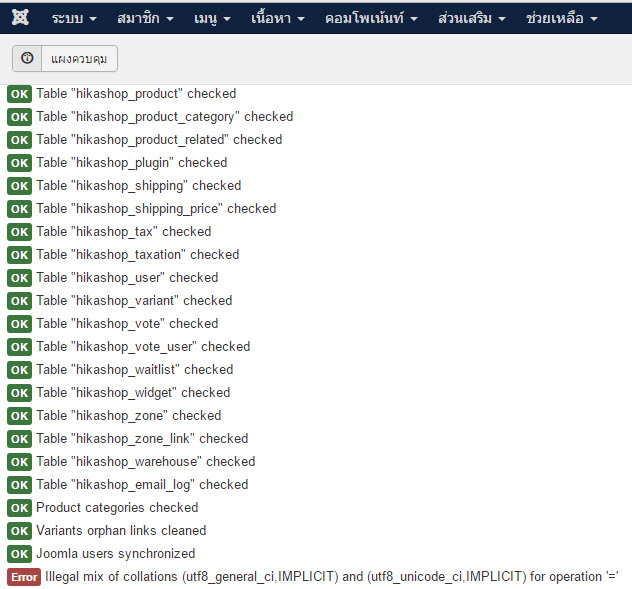 ผมตรวจสอบ ฐานข้อมูล ใน hikashop config