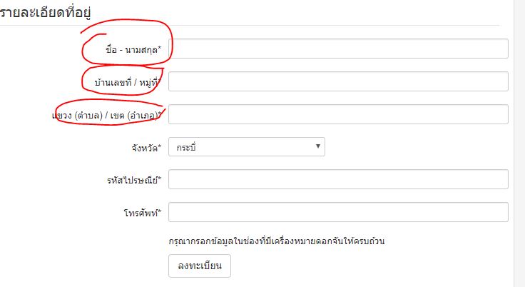 รายละเอียดที่อยู่ ไม่มีช่องใส่ข้อมูลบ้านเลขที่ ช่วยทีครับผม