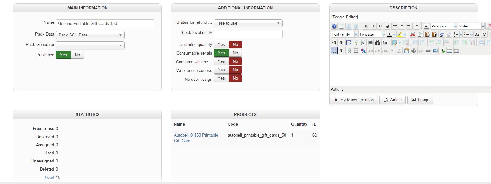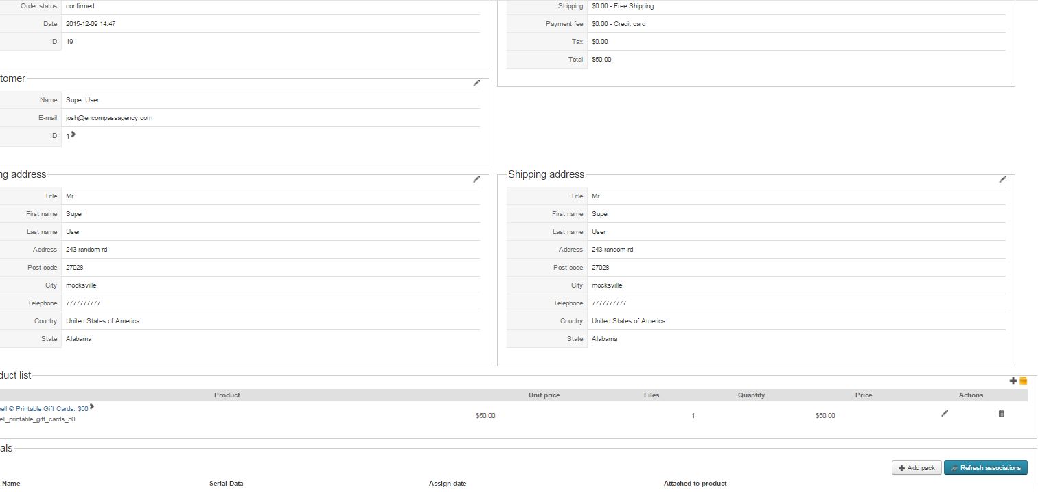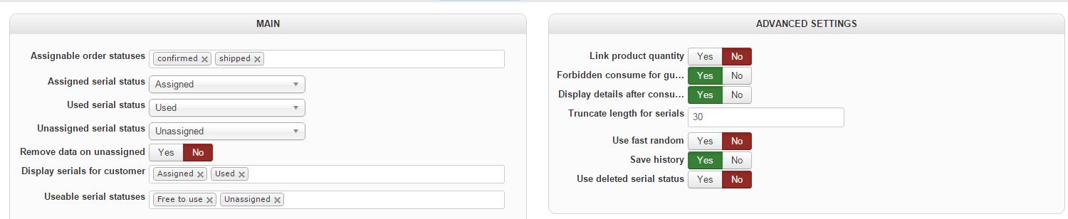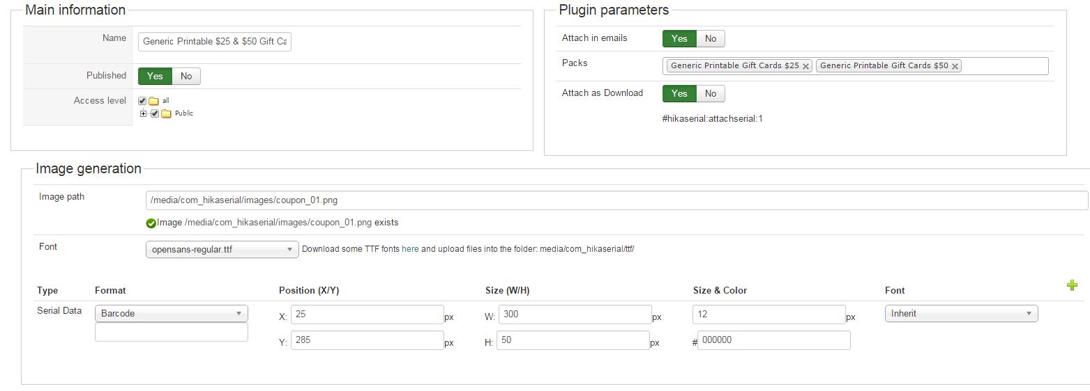 I uploaded a screenshot of the hikaserial configuration settings, hikashop product variant settings with the pack attached, the order which default is set to confirmed., pack settings, serial settings, and serial attach settings.