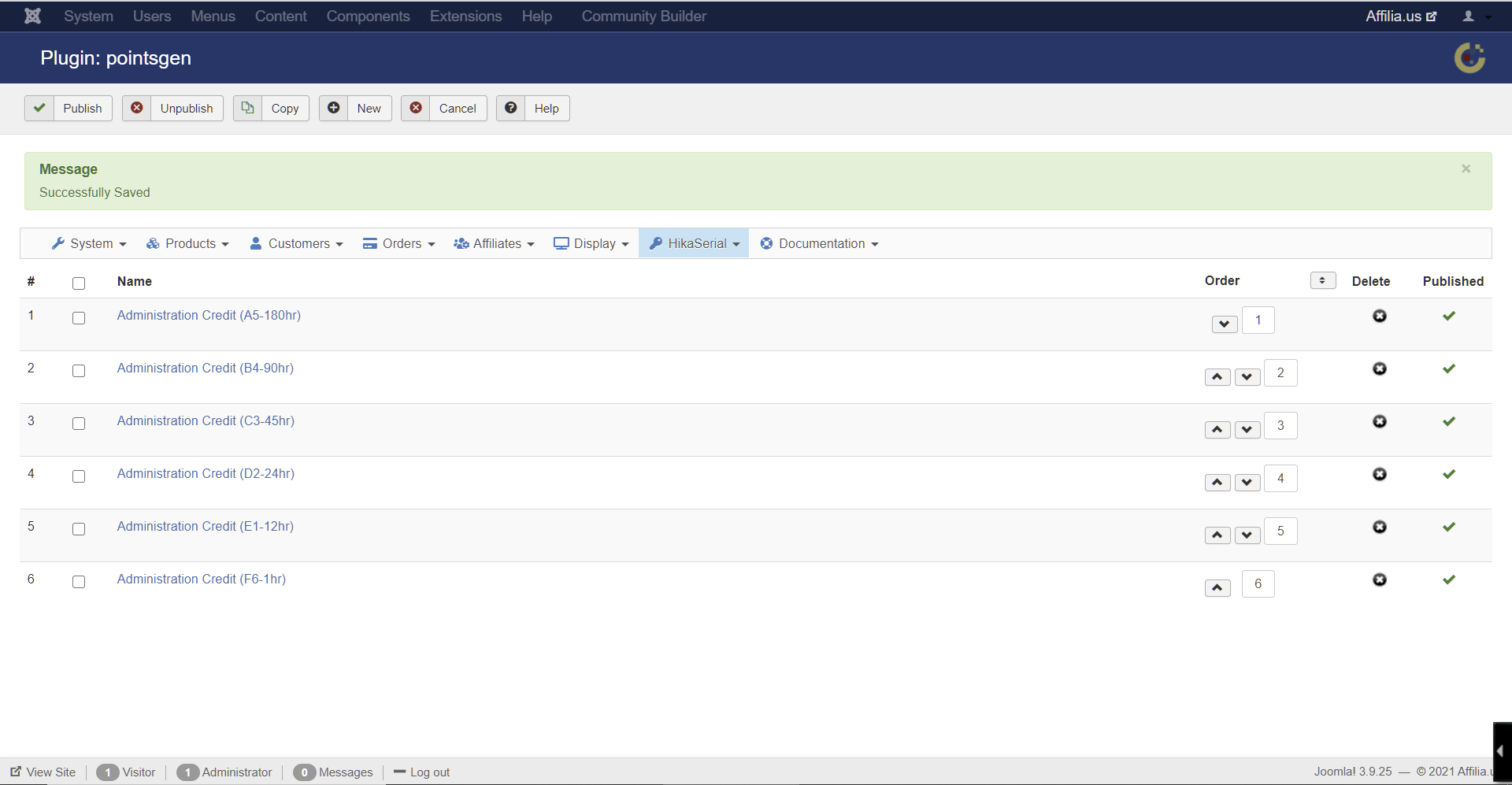 So you need the HikaSerial consume page (or consume module), to let the user enter a serial and receive the points.