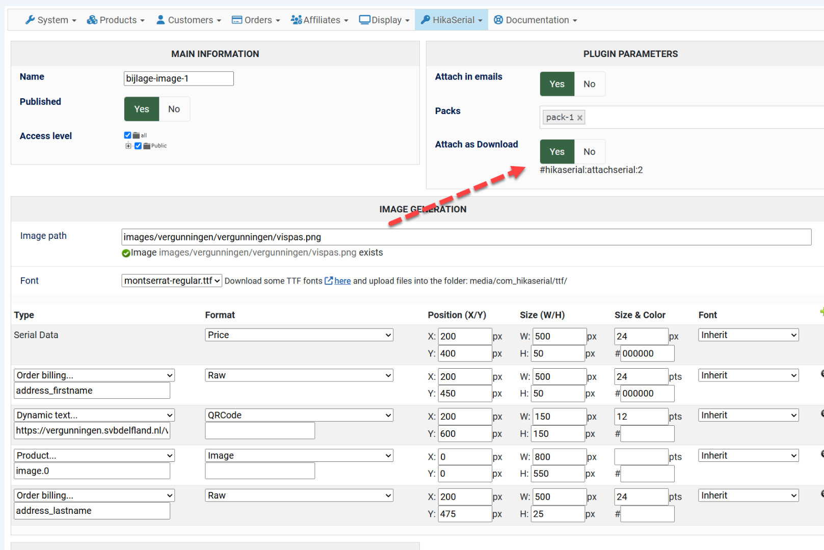 We are currently using HikaSerial in combination with the PDF Serial and Attach Serial plugins. Everything works well in terms of PDF generation and image generation — the PDF and image is successfully created and attached to the confirmation email when an order is confirmed (still manual, see other issue)