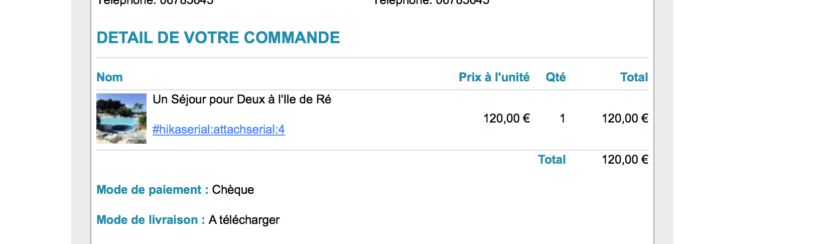 Le serial est alors assigné à la commande et à l'utilisateur.