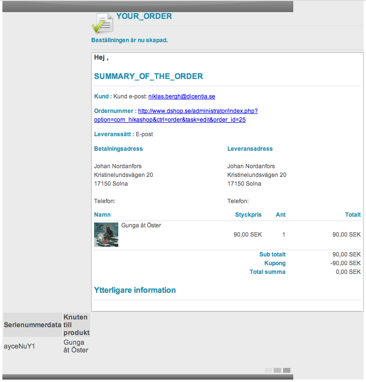 The template in HikaSerial 1.7.4 is not more valid with the new emails for HikaShop 2.2.2
