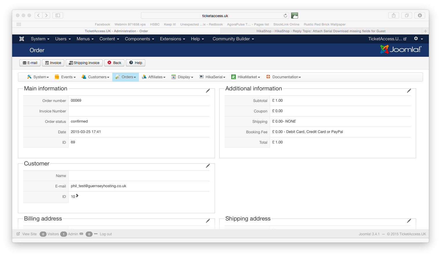 The function "loadFullOrder" of HikaShop generally check that the current logged user have the right to open the order (in the front-end context).