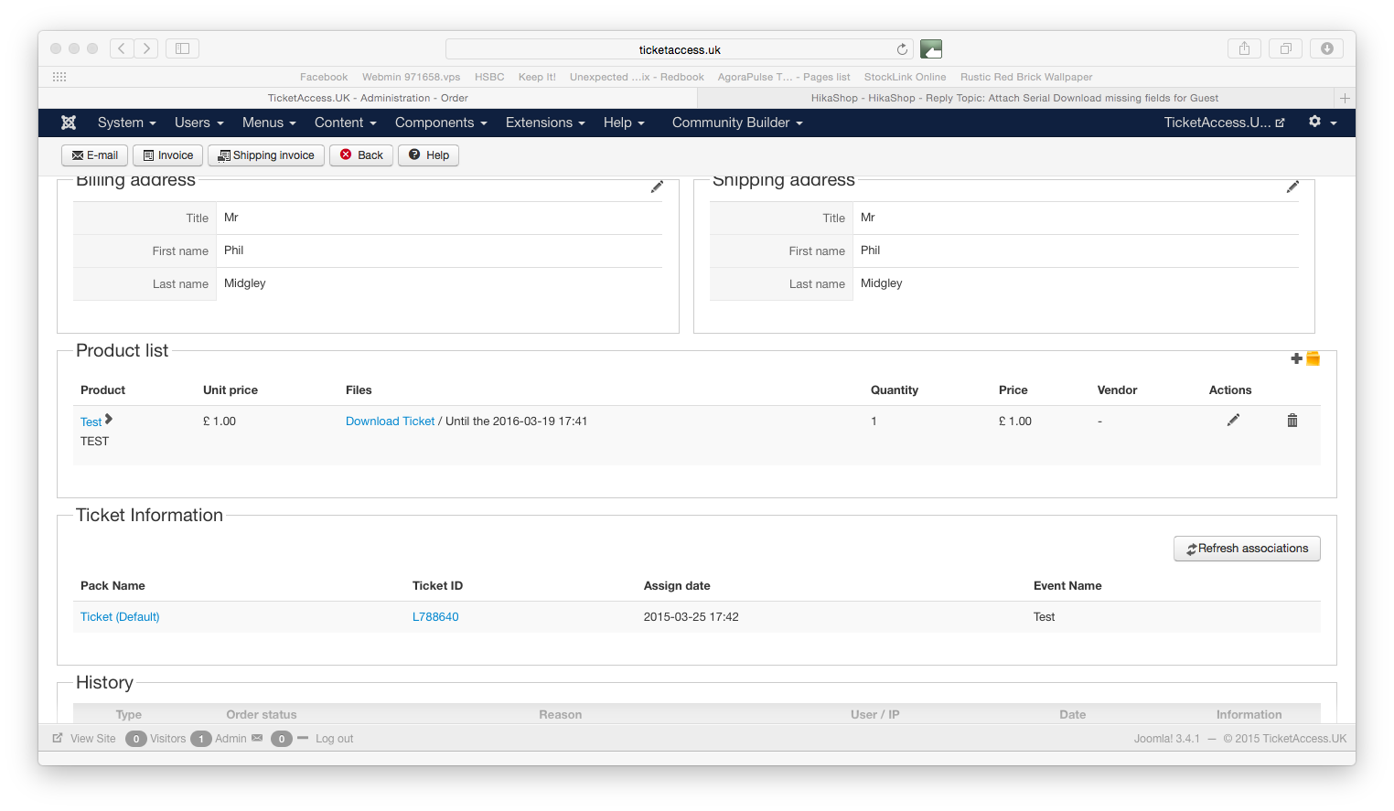 Because you're using a guest account, the user is not logged so HikaShop can't see that the current user is the same than for the order.