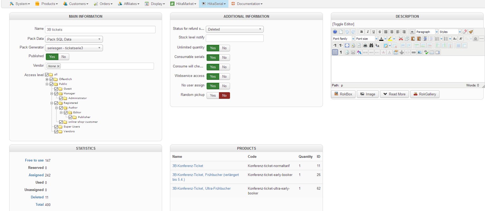 I am selling Tickets that are created by HikaSerial AttachSerial. They also show the price.