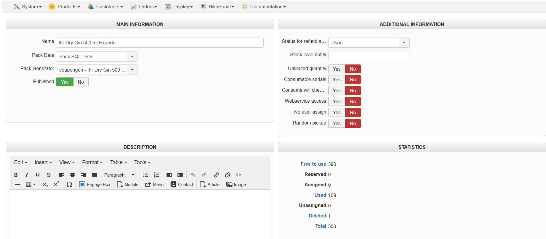 But your serials are "also" HikaShop coupon (since you're using the coupon generator).
