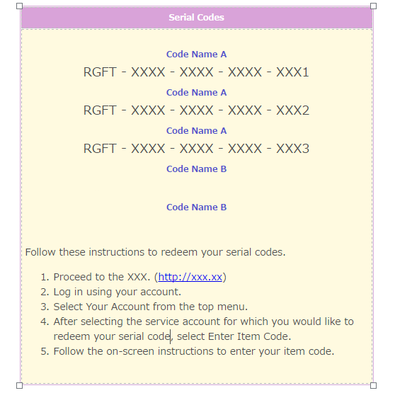 I need product name first then serial on the second line, like that, and other serials for this product if customer bough more then one