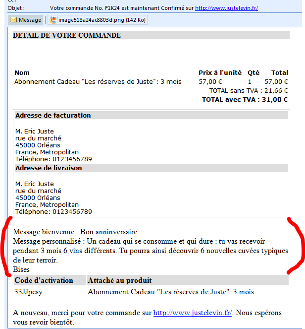 Merci d'éditer le fichier "plugins/hikaserial/attachserial/attachserial.php" et de replacer le code suivant au début de la fonction onBeforeSerialMailSend :