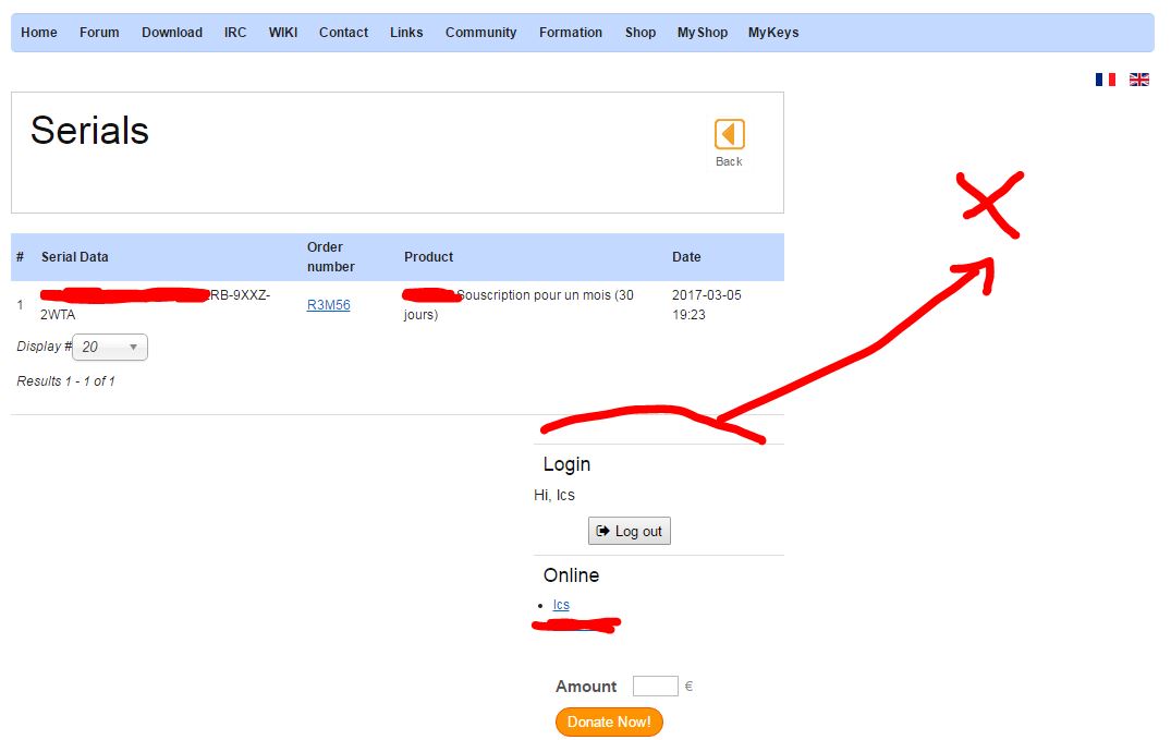 Lorsqu'on créé un menu pour afficher les serials de l'utilisateur (index.php?option=com_hikaserial&view=serial&layout=listing ), la position "side" (right) passe à la ligne. Cela doit être un pb de float sur une div mais je n'arrive pas à le trouver. Tous les autres affichages (liste des commandes, produits, panier, checkout, etc...) ne "cassent" pas la position "side".