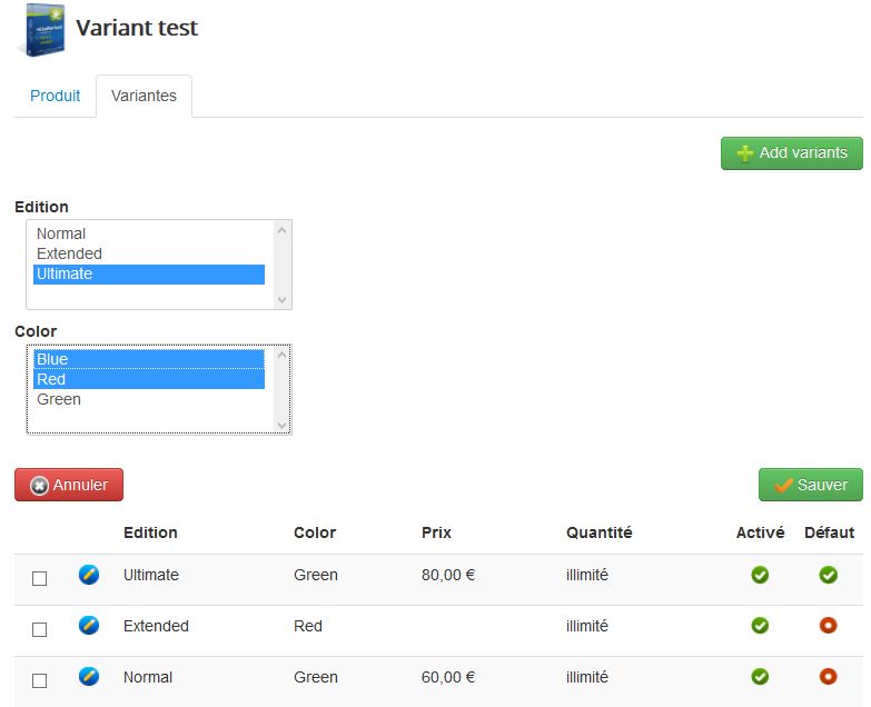 By a simple click on the table line, you will load the variant in "Ajax" (because it's cool to not reload all the page).