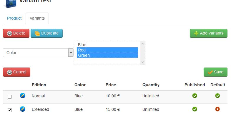 The current development (after a tiny night) allow to save the variant (still in ajax) and also to make a global save (to save the product and the variant in the same time).