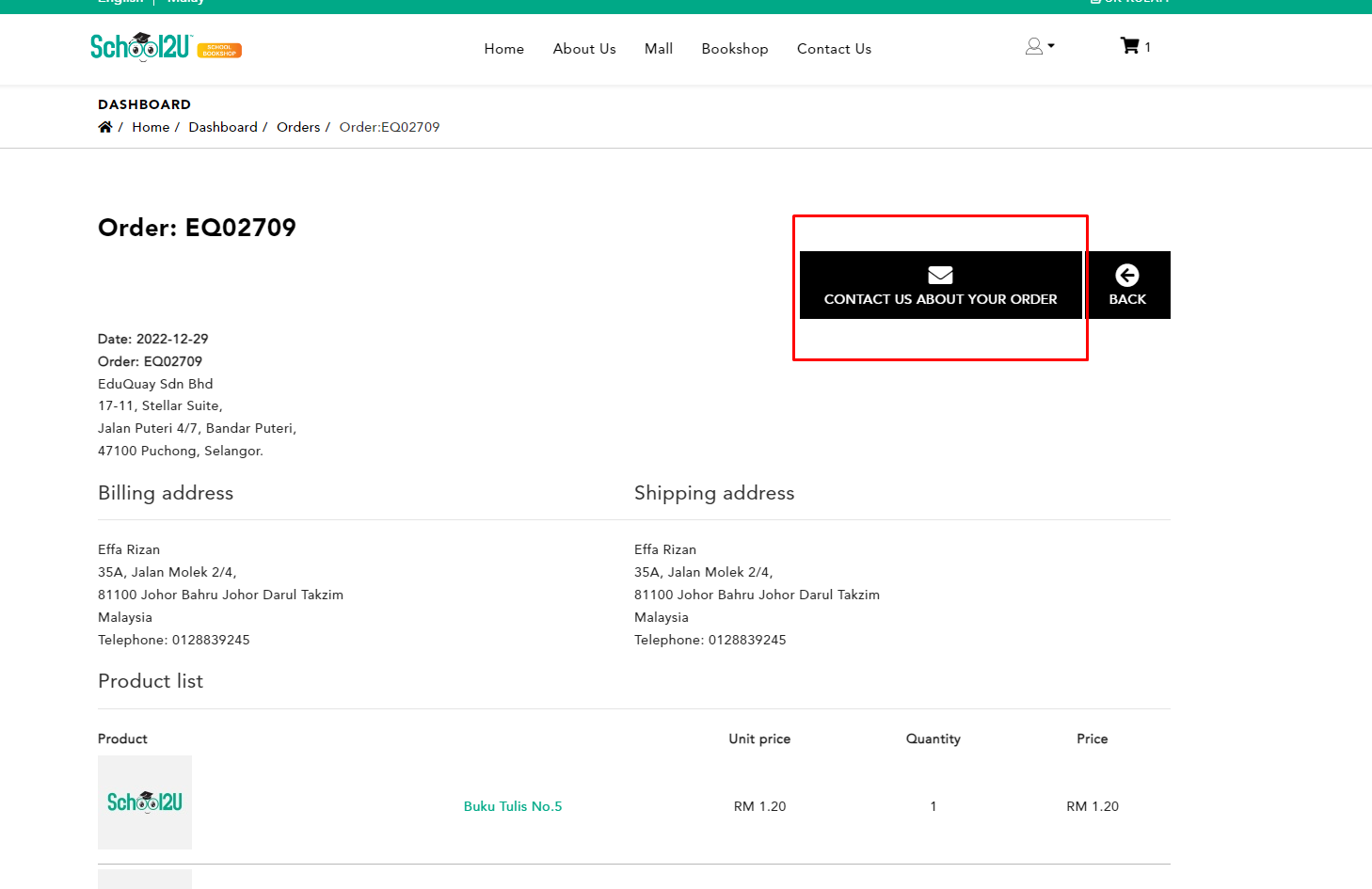 But the "contact us" in the order is not supported by HikaMarket, the main reason is that an order might not be handle by the vendor and that you can have multiple vendors in the same customer order.