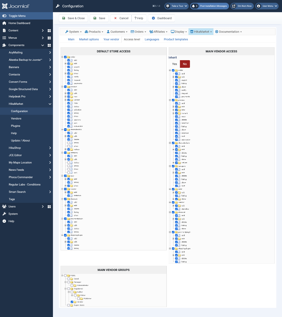 I've got Hikamarket set up to create a category for each vendor, and I'm using MyMaps to allow geo search.