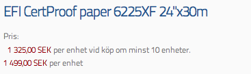 Go in on my site and choose over the menu "Butiken/Papper/EFI Semimatt" then you see that it looks OK now. Then in the breadcrumbs select Papper and you will get a category listing of the category "Papper". Now select "EFI Semimatt" and you'll see that the quantity prices are all gone!