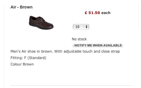 Choose the second item on the list and it shows the stock level. Now choosing the first item on the list shows that it has stock. See the graphic.