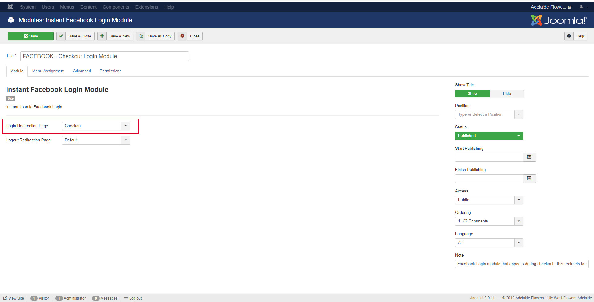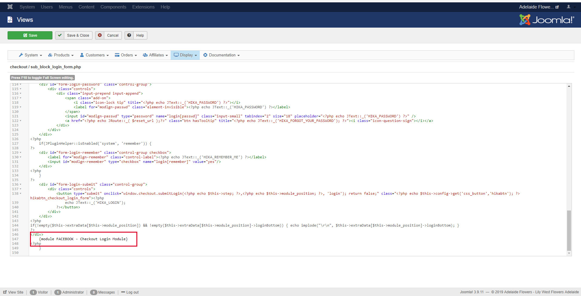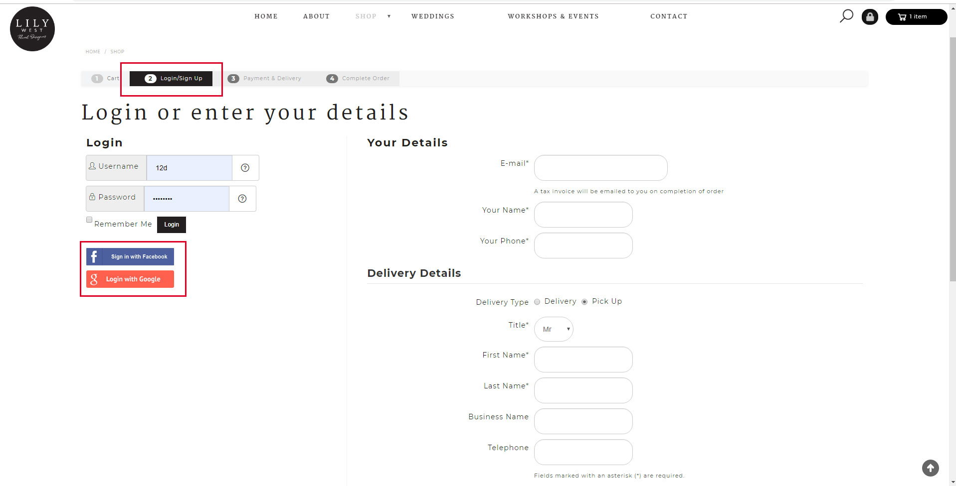 This is where the facebook login module is loaded on Step 2: